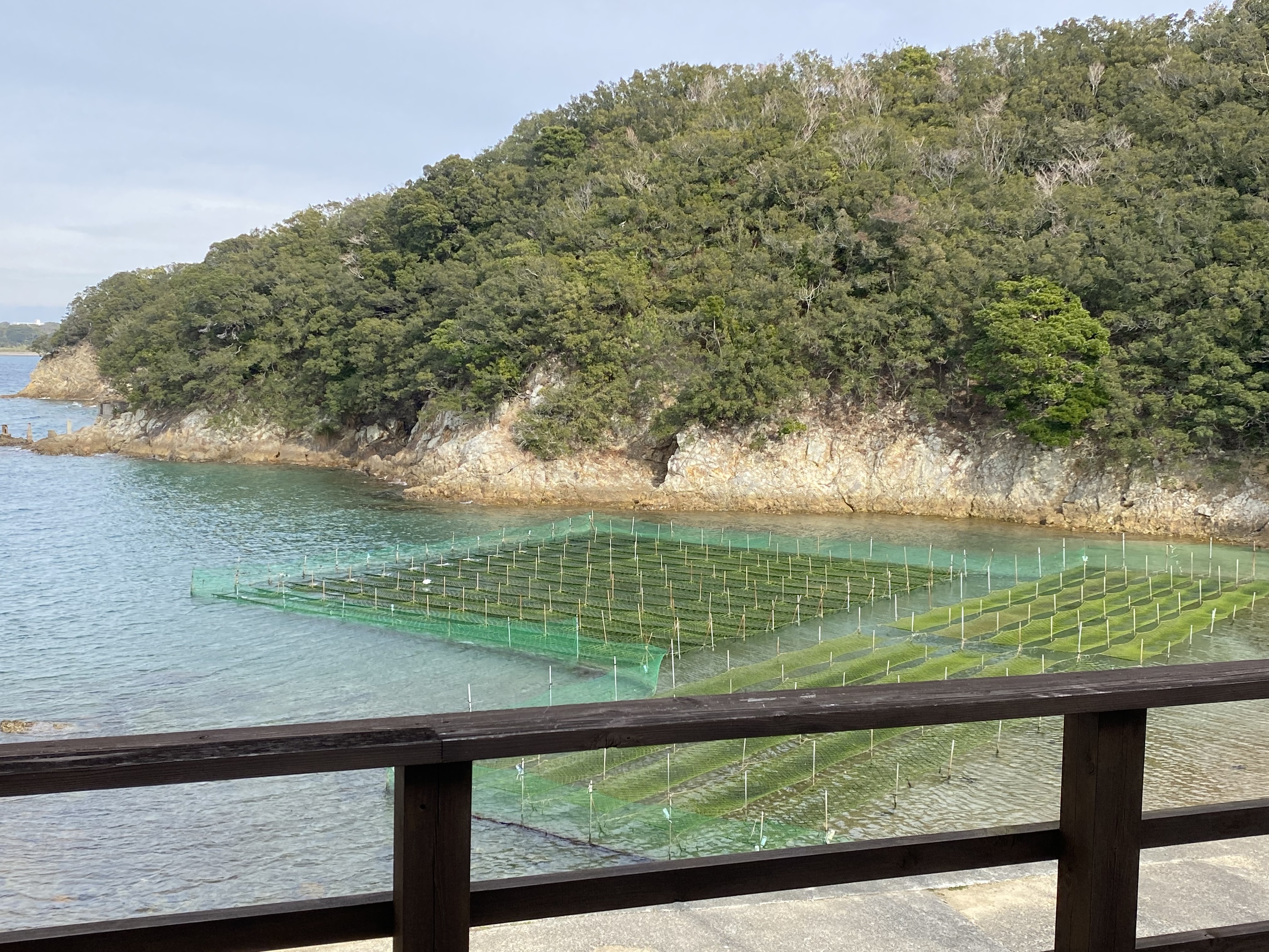 目の前には英虞湾が望め風の音や波の音に耳を澄ます。